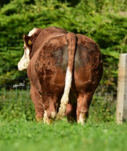 Purchased in 2017 when the opportunity arose having found him online on the back of both his sire (Banwy T-Rex) and his maternal sire (Glebefarm Tyson) being two of the most consistent breeding bulls in the last decade. With them crossed it produced a super muscle machine with tremendous width, lenght and locomotion.