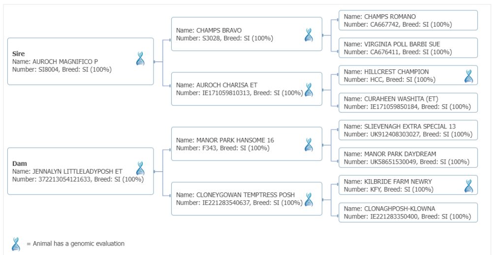 | Sire: Auroch Magnifico P | GS: Champs Bravo GD: Aurocha Charissa |