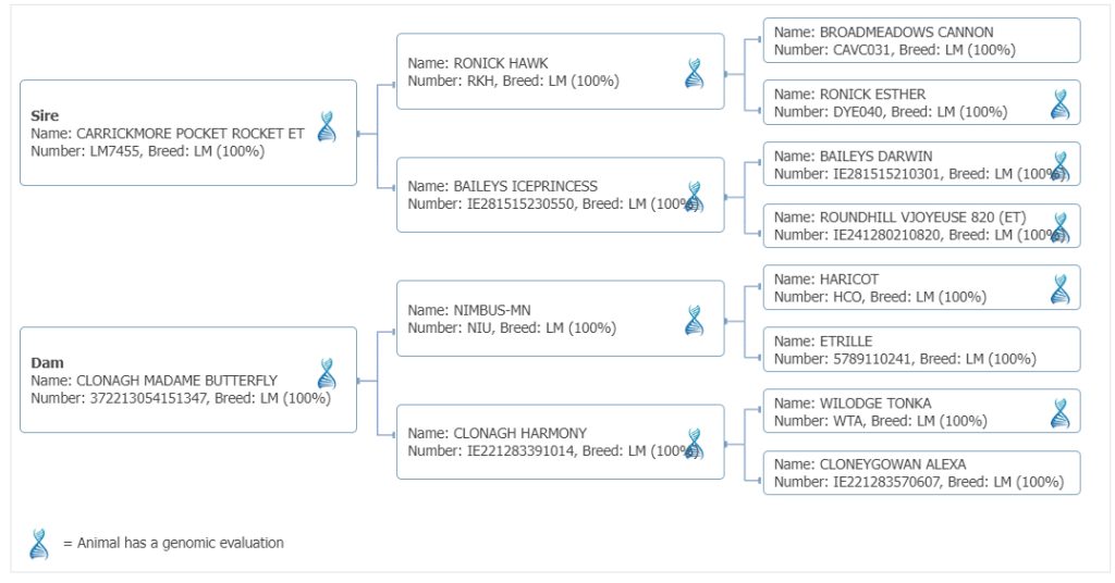 | Dam: Clonagh Madame Butterfly | GS: Nimbus GD: Clonagh Harmony |