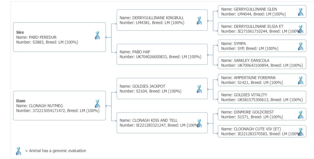 | Sire: Pabo Peredur | GS: Derrygullinane Kingbull GD: Pabo Haf |